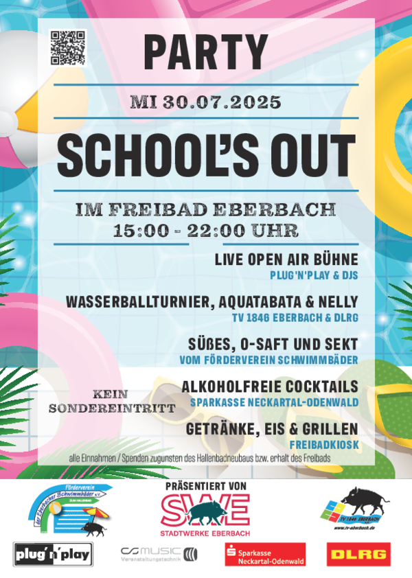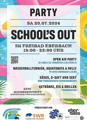School's out Party in Eberbach zum Start der Sommerferien - im ganzen Freibad.